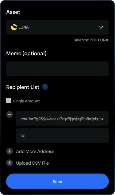 If you need to send to bulk addresses, you can send them by uploading a CSV file.